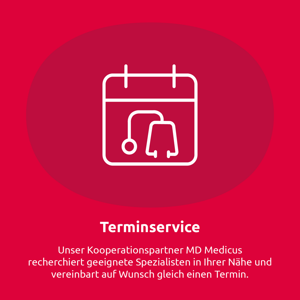 Aus diesem Grund bieten wir mit den Gesundheitsservices unseren Versicherten Zugang zu hochqualitativen Angeboten und Informationen. Während Angebote wie der Risikoselbsttest helfen können, eine eventuelle Belastung frühzeitig zu erkennen, dienen Angebote wie der Terminservice, um möglichst zeitnah an geeignete Spezialisten (Psychiater, Psychotherapeuten oder Psychologen) in der Nähe zu kommen.